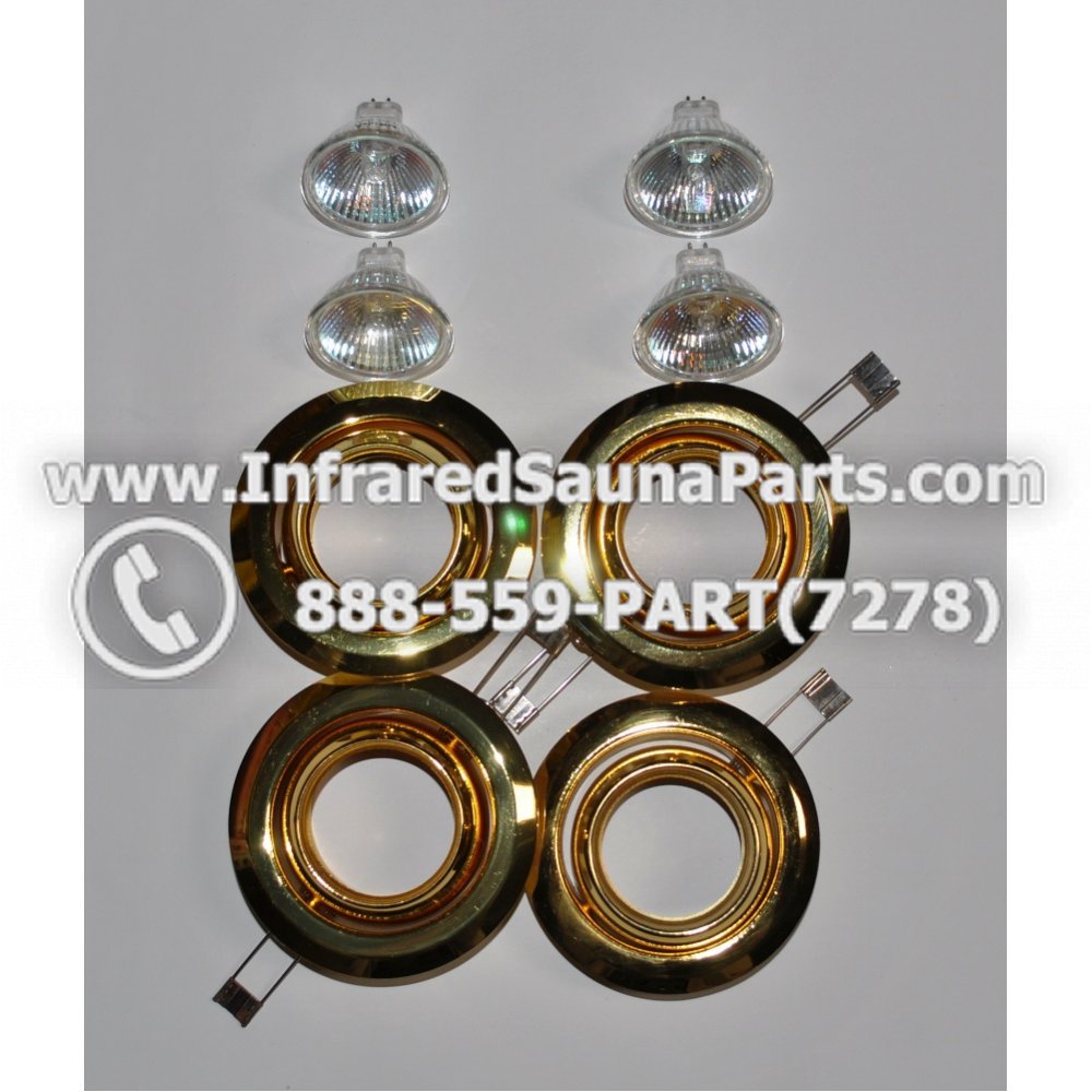 COMPLETE LIGHT ASSEMBLY 4 HOUSING IN GOLD FINISH WITH 4 BULBS 220V / 240V